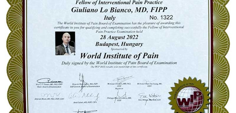 Terapia del dolore: al Dottor Giuliano Lo Bianco la Certificazione Internazionale FIPP